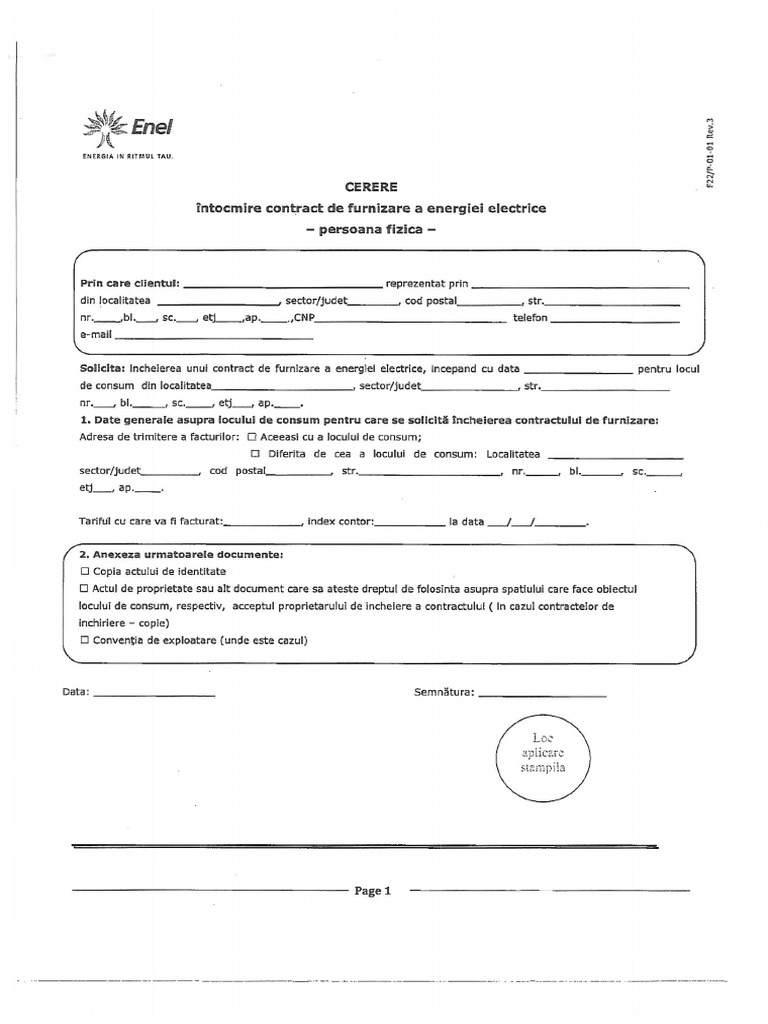 Schimbarea contractului la enel (pagina următoare). Pentru a vă scuti de un stat la o coadă infernală, anexez mai jos documentele necesare pentru schimbarea titularului de contract enel pentru persoane fizice. În schimb la enel este bine ascunsă printre niște slogane mobilizatoare.